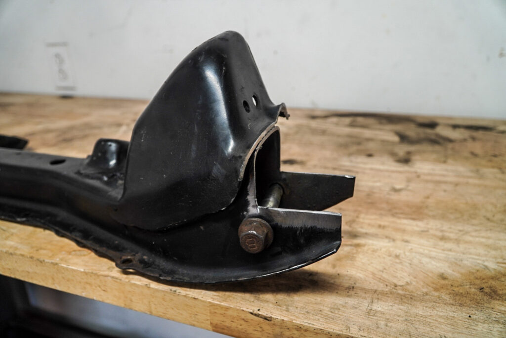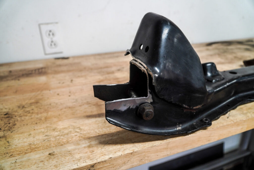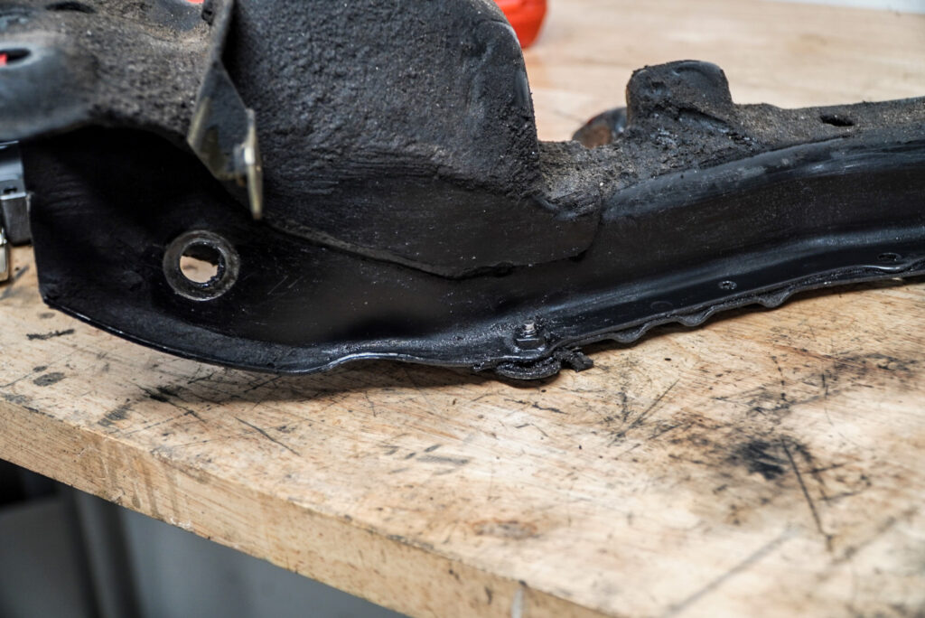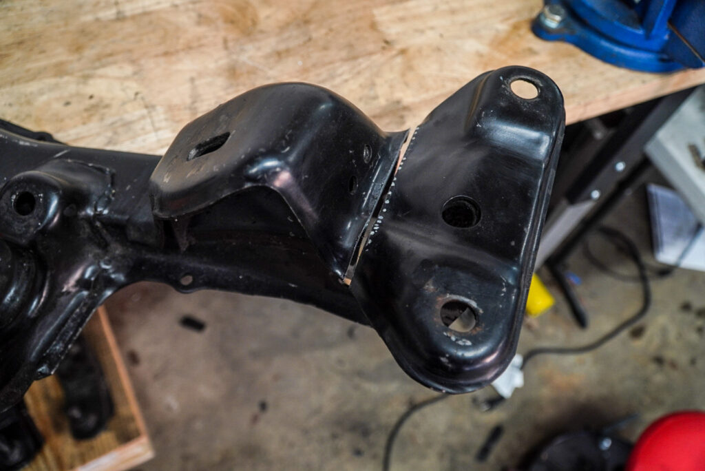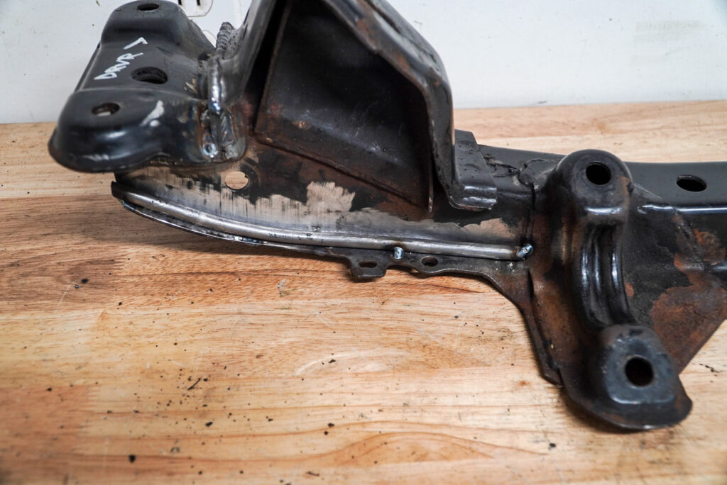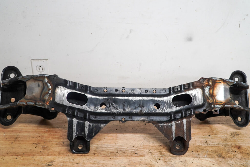 These subframes tend to bend where the front lower control arm mounts since it’s essentially only two thin pieces of steel that form a channel. When the subframes bend, they tend to kink around the edges, see below for an extreme example featuring Nick’s subframe: