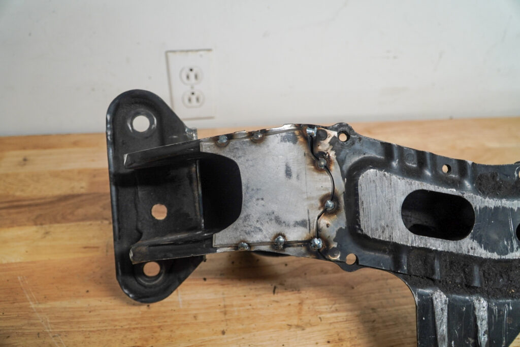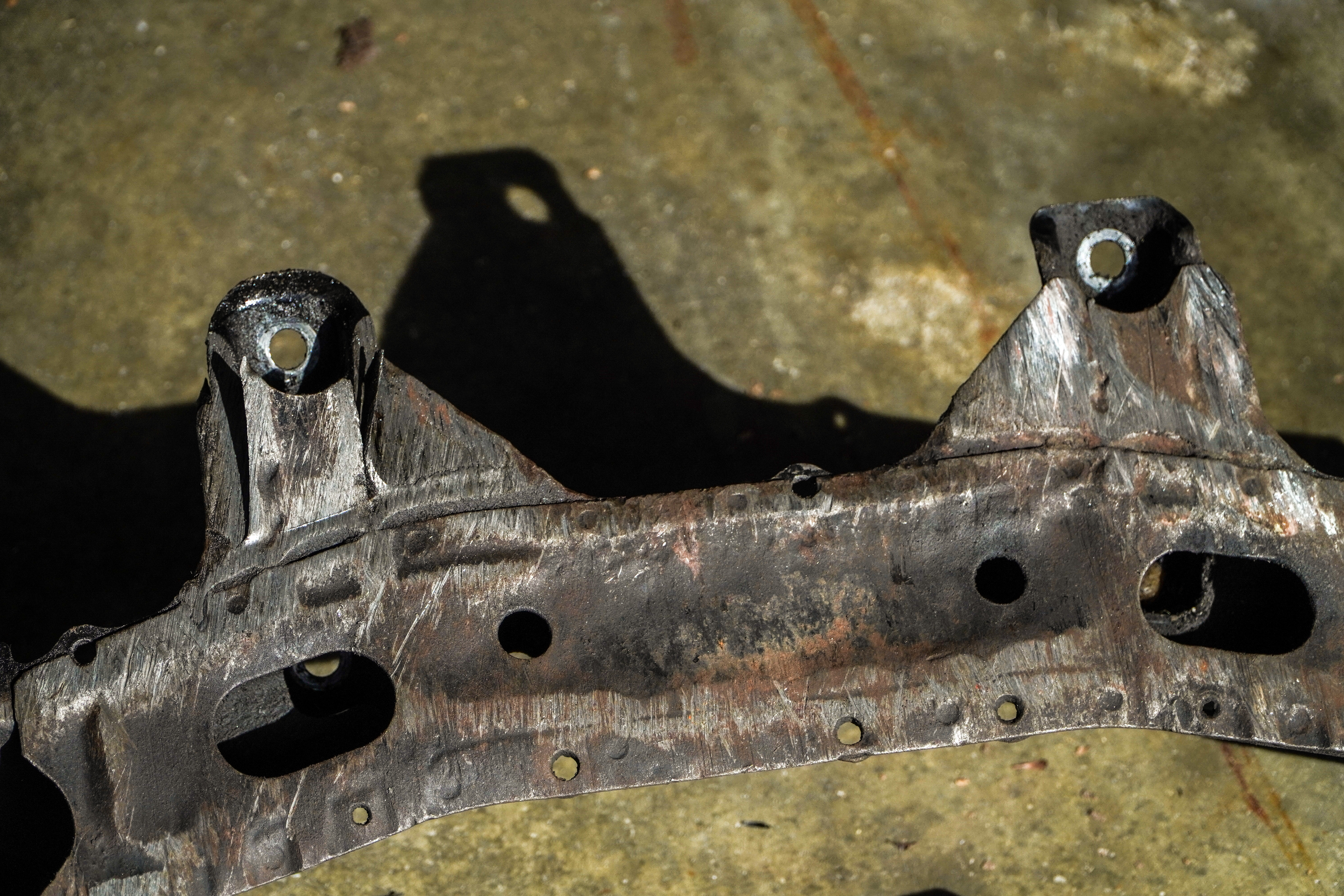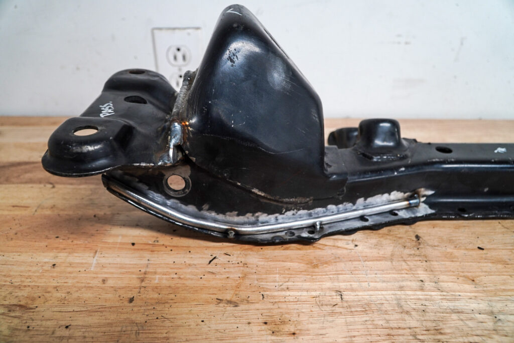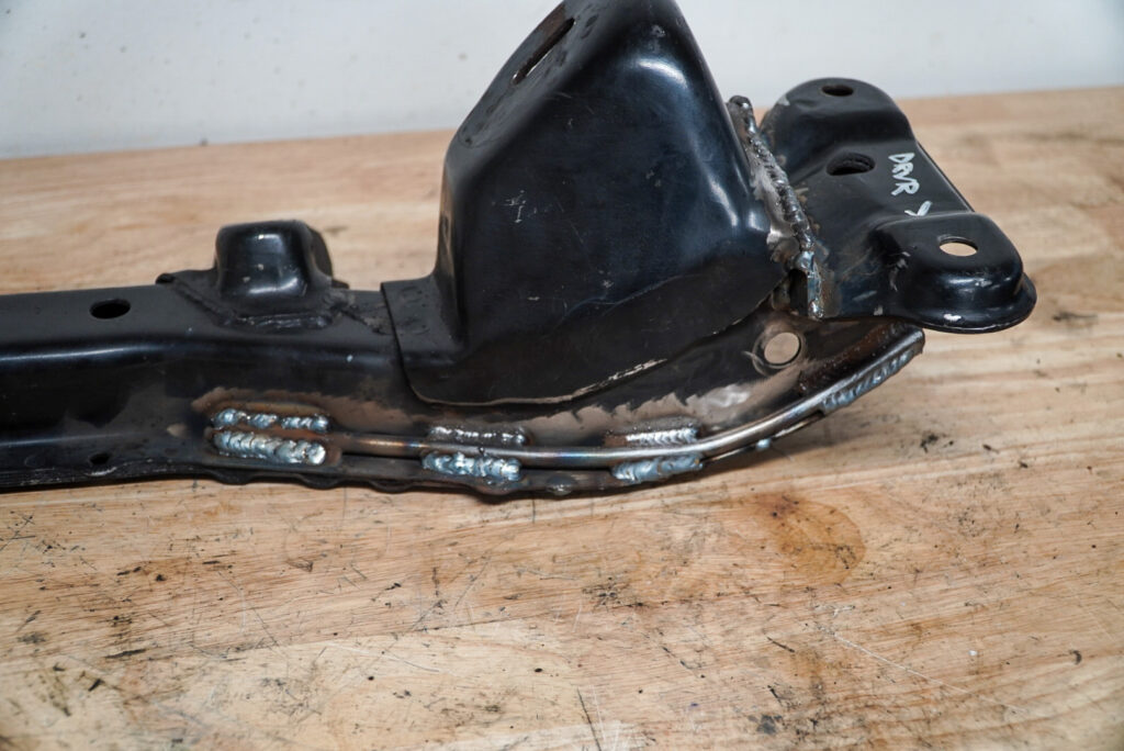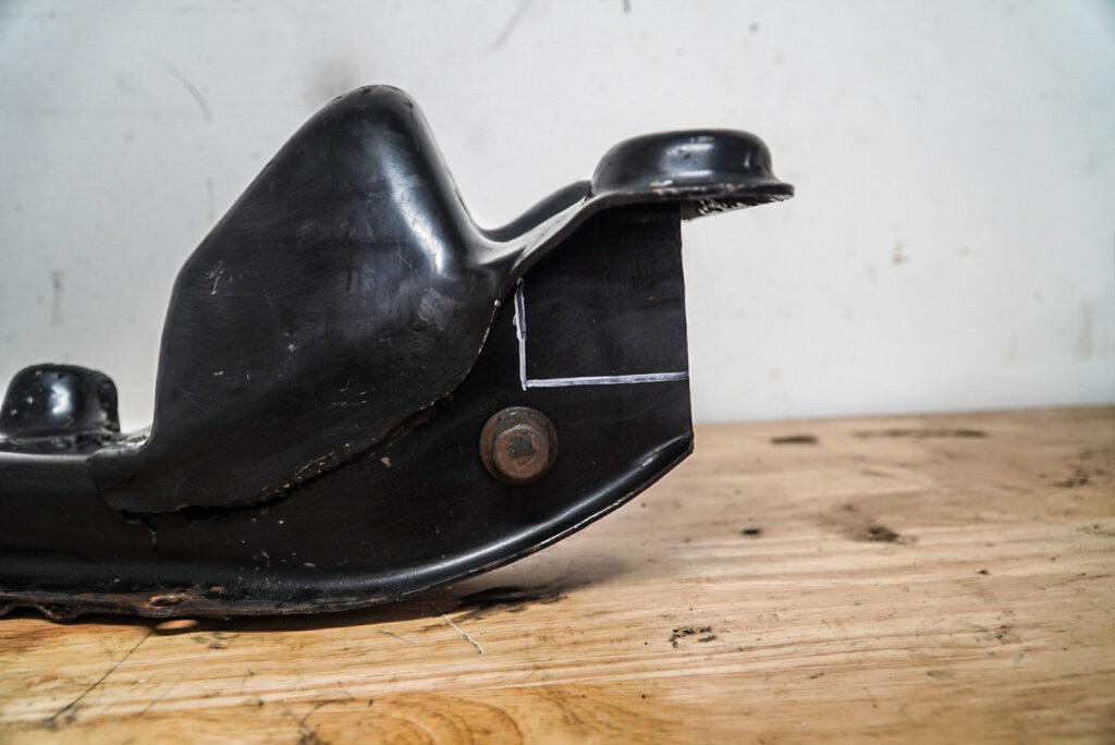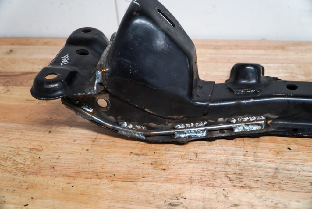 These subframes tend to bend where the front lower control arm mounts since it’s essentially only two thin pieces of steel that form a channel. When the subframes bend, they tend to kink around the edges, see below for an extreme example featuring Nick’s subframe: