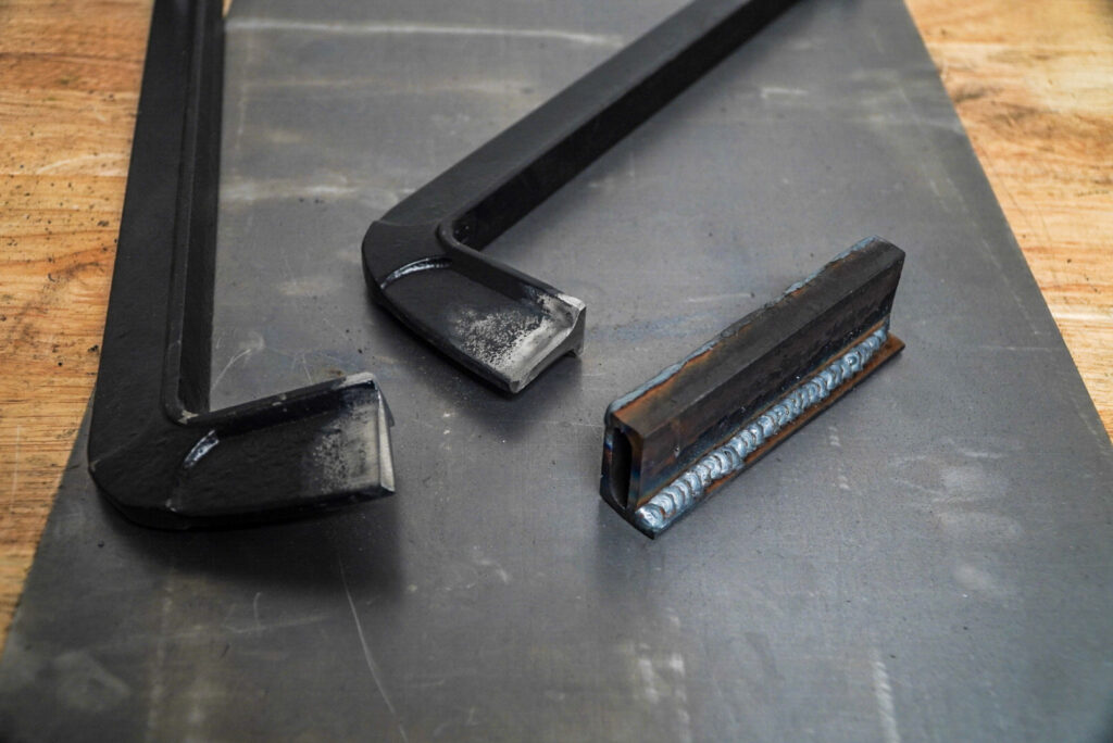 Welded two pieces of angle steel and shortened to match the edge of the clamp:
