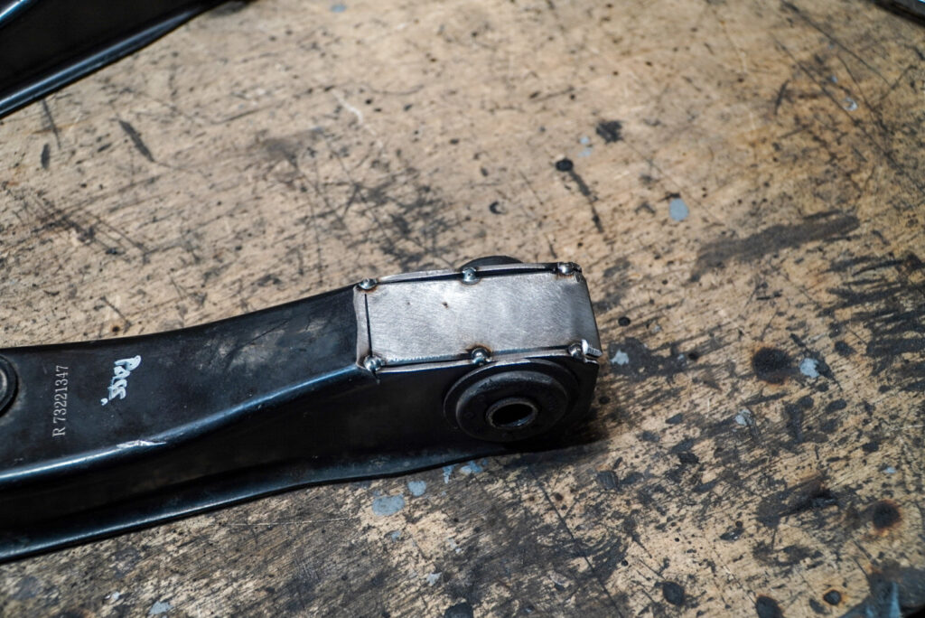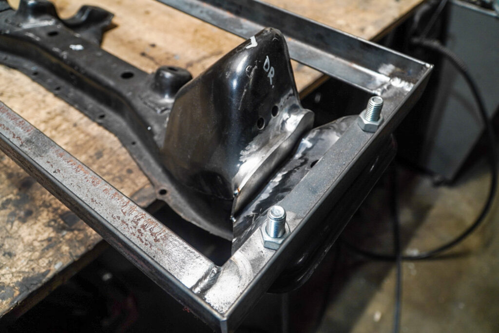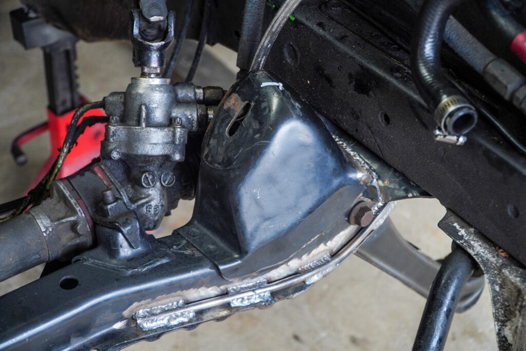 I elected to not brace the bottom to leave a failure point in the front suspension. I’d rather make a new arm than a new subframe. Speaking of bracing, I needed to protect the investment of time I put into this thing. After bending two subframes, I needed this one to last. This is also going to be an integral part of the car going forward since we’ll need to make a hell of a lot of changes to pieces around the engine for this thing to work. Meaning, if this bends, I’ll have to make another – which I really want to avoid. I don’t see any kits like this offered in the current market – would be cool if someone manufactured these.